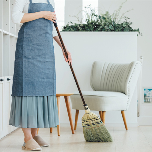 粗ゴミや砂をしっかり掃き取ります。柄が分離でき持ち運びに便利。
