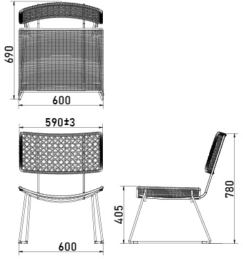 幅 600 ×奥行 690 ×高さ 780 mm  座部高さ405mm
