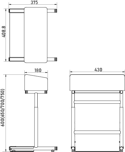 - 幅 430 ×奥行 375 ×高さ 600~750 mm (4段階/50mmピッチ)