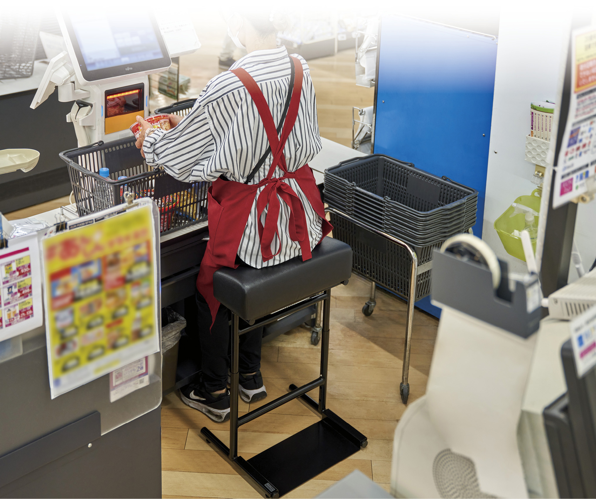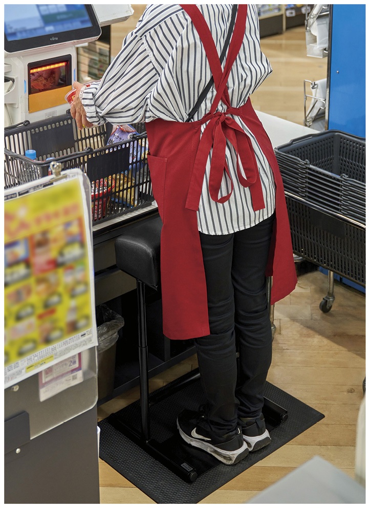 長時間の立ち仕事をサポート!ちょい掛けで足腰への負担が軽減できます。