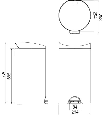 幅 264 ×奥行 268 ×高さ 720 mm <内容器:225×230×510>