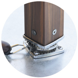 - 天幕:アクリル、ギボシ・ロクロ:ステンレス鋳物、心棒・フレーム:アルミ・ステンレス鋳物、ベース:スチール