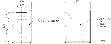 幅 370 ×奥行 500 ×高さ 620 mm <内容器:320×224×350>