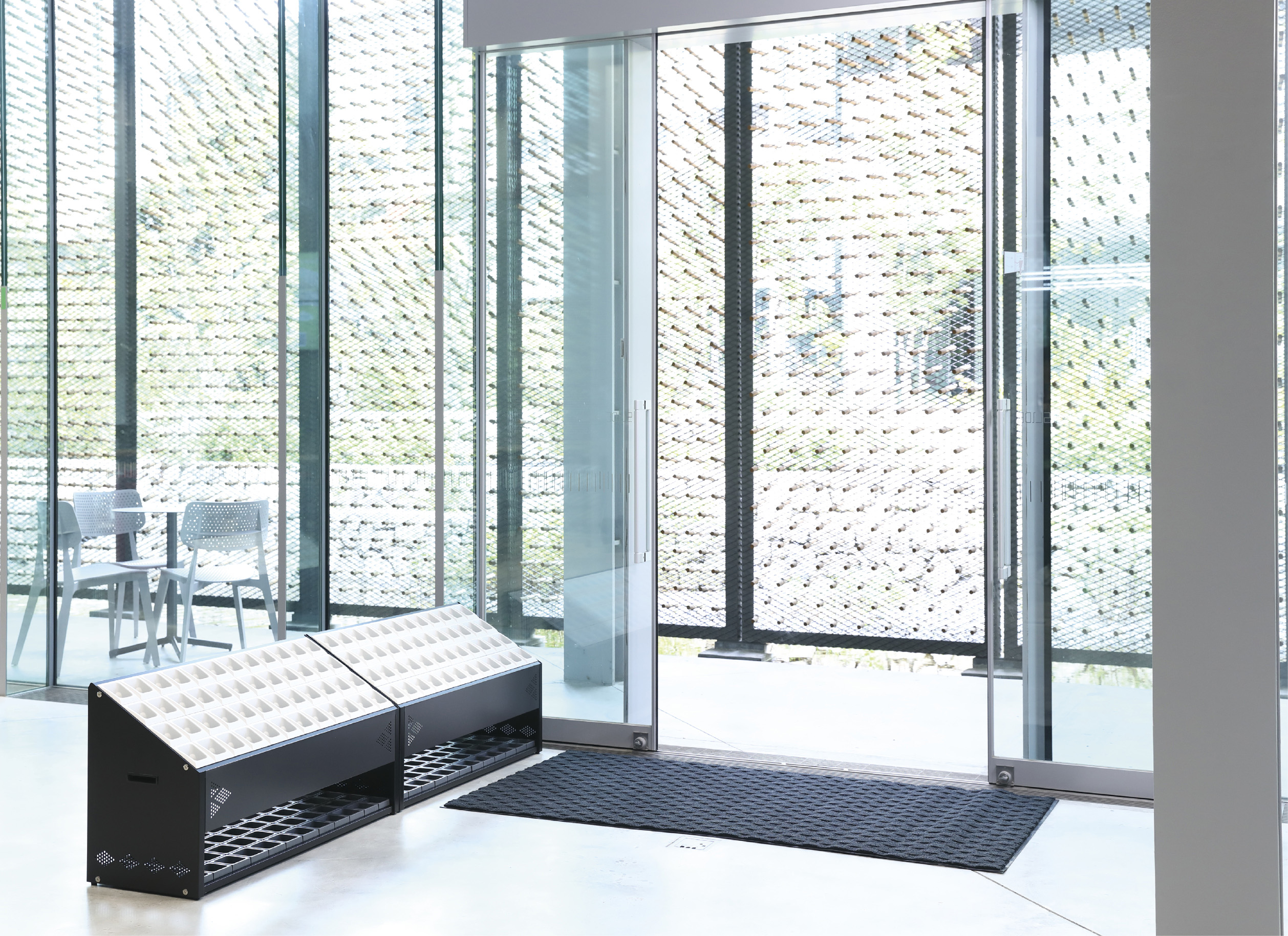 機能性と安全性に配慮したデザイン傘立て。子供でも傘が入れやすい形状を採用しました。