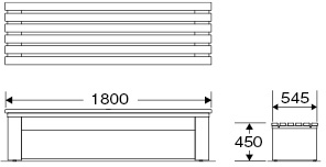 - 幅 1800 ×奥行 545 ×高さ 450 mm 収納部有効サイズ約:幅1480×奥行430×高さ370
