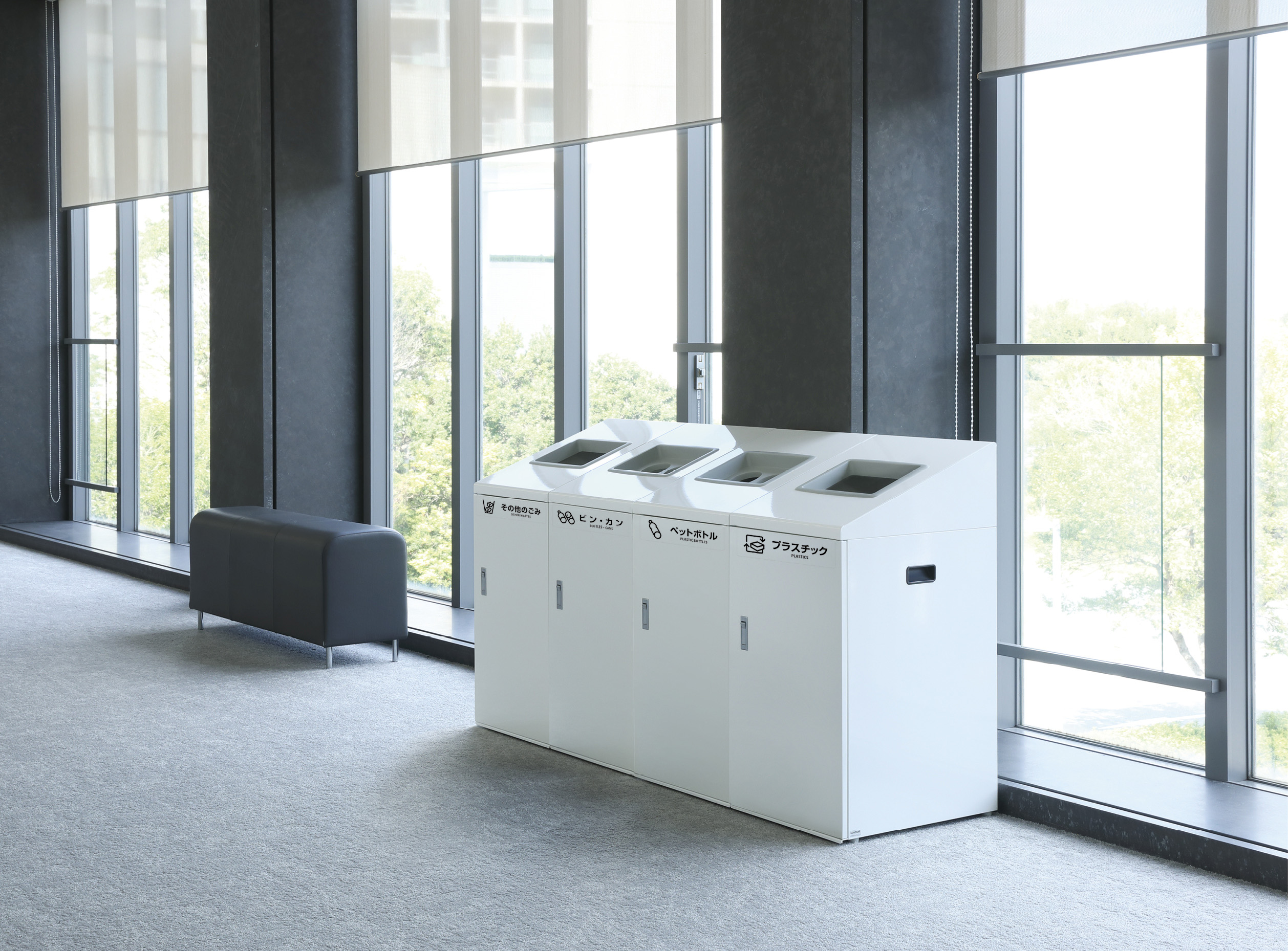 本体:スチ-ル粉体塗装、投入口:再生PP100%、内容器:再生PP100%