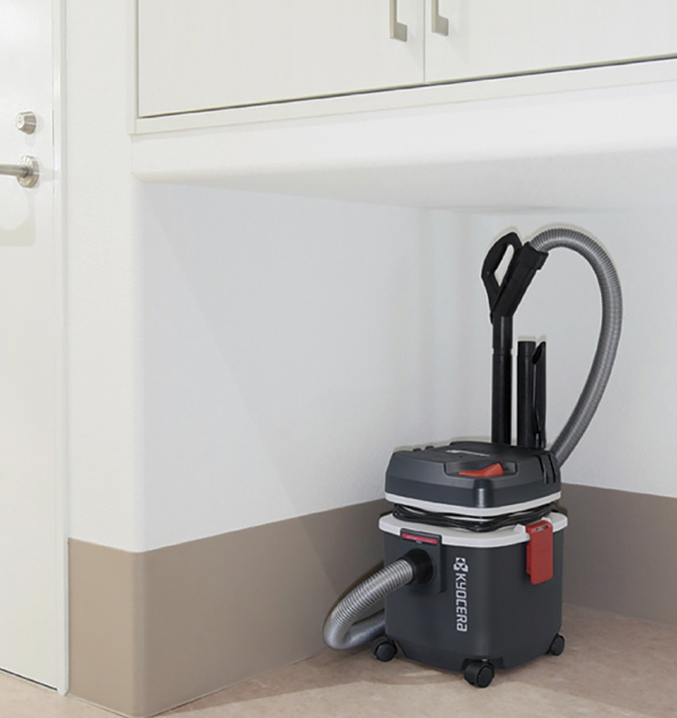 湿ったゴミや液体汚水も吸引できる。コンパクトなボディながら十分なタンク容量!
