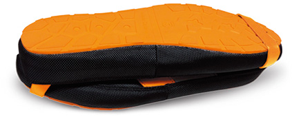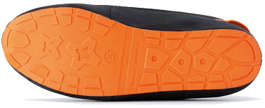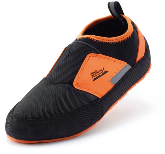 ガラスや釘から足裏を守る特殊繊維入シューズ。折りたためて携帯・保管に便利!